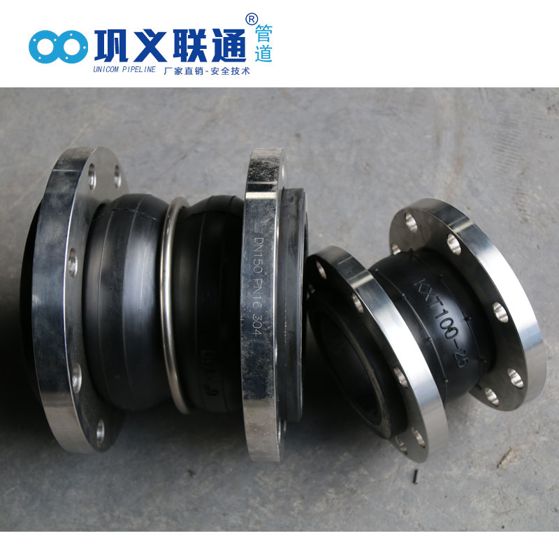 卡箍式柔性橡膠接頭,采用卡箍來代替法蘭盤和螺栓,安裝時可將卡箍式柔性橡膠接頭的兩管口分別套裝在要邊接的管道上,通過卡箍將柔性橡膠接頭與管道固定連接。卡箍連接柔性橡膠接頭拆卸時鬆開所述卡箍即可,達到補償管道因熱脹冷縮,輸水所產生的位移量。