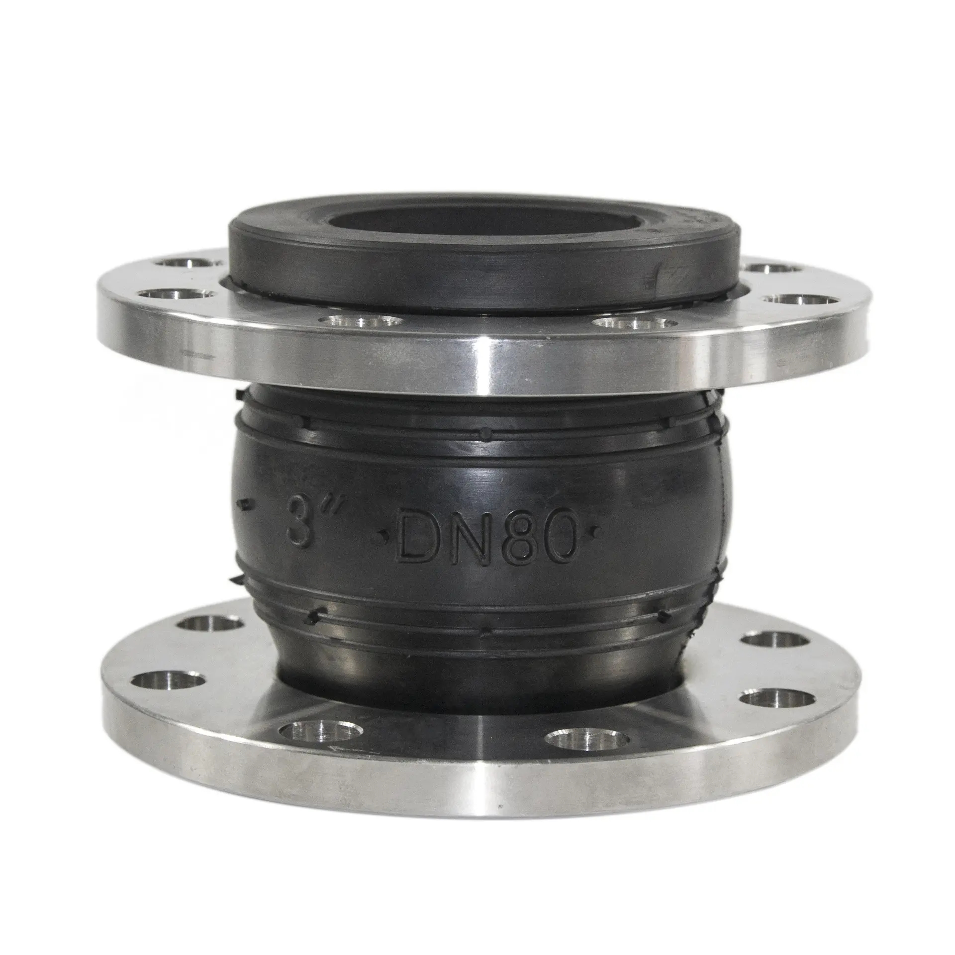 法蘭橡膠異徑軟接頭在安裝前先把需要連接的兩端管件在水平麵上放平,安裝時先把固定牢固的端管件放平,接著讓橡膠接頭上的法蘭轉動使法蘭孔四周對齊,川上螺絲,擰上螺母,然後使另端管件法蘭與橡膠接頭上的法蘭水平對齊,旋轉橡膠接頭上的法蘭,使法蘭口四周相對,川上螺絲,擰上螺母,水平方向使三者緊密連接,防止密封不嚴。